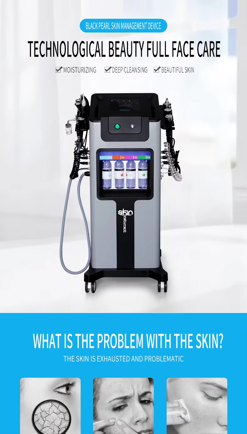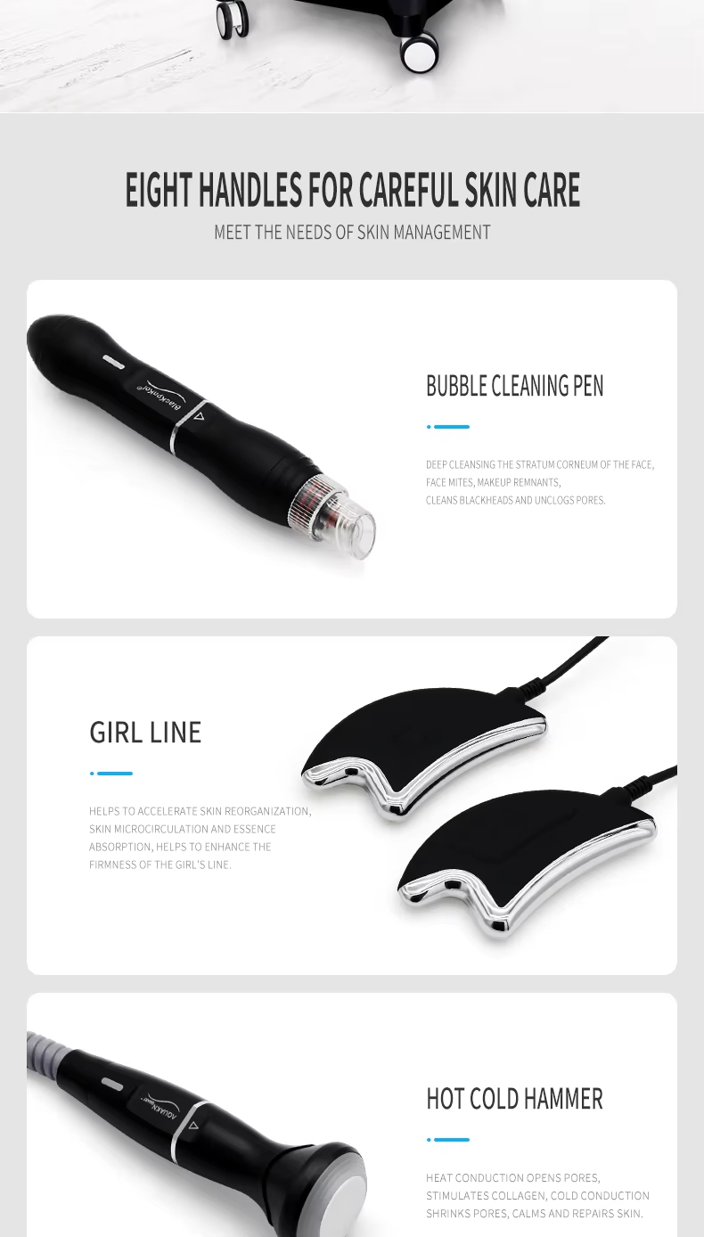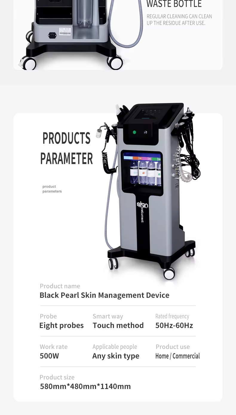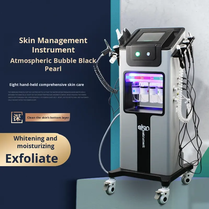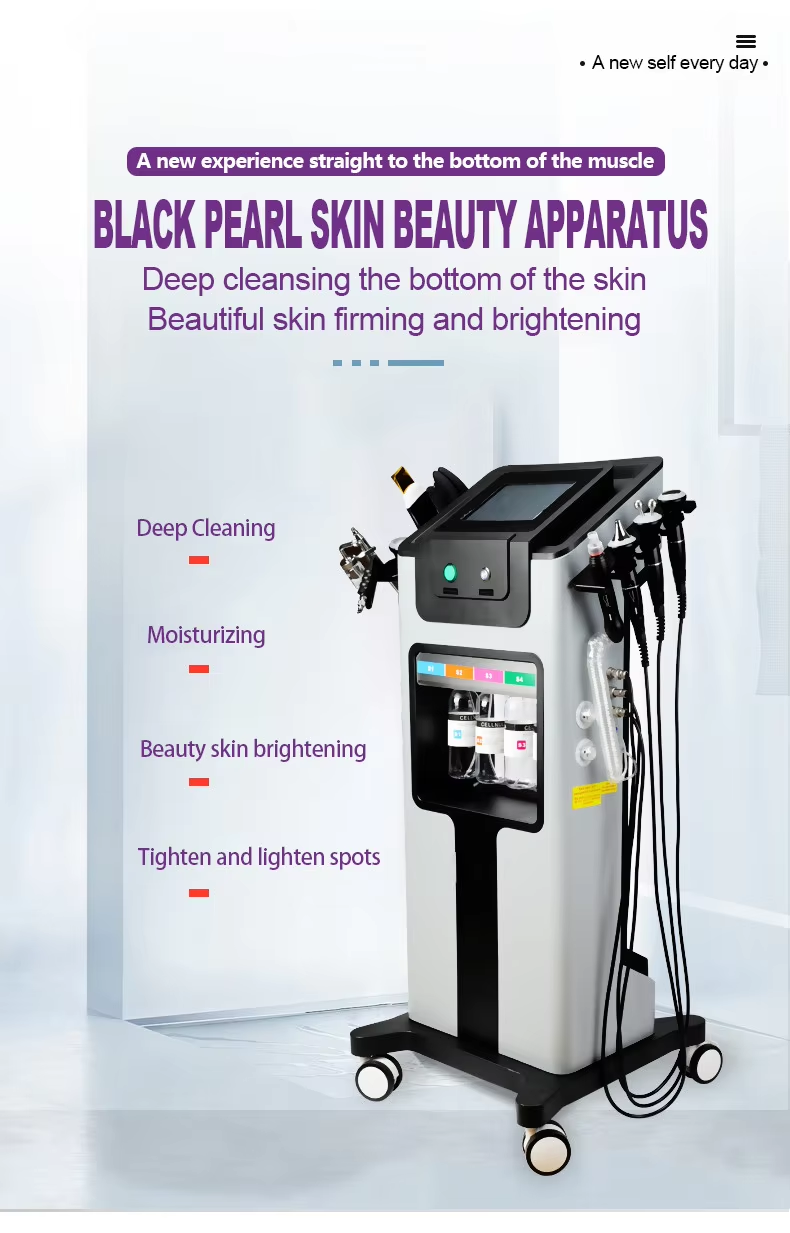 1. Deep Cleansing and Purification: The Black Pearl Microbubble Cleanser utilizes the vacuum negative pressure generated by the device, combined with a special solution (such as a microbubble solution or a water-oxygen combination solution), to absorb accumulated oil, dirt, blackheads, and other impurities from pores. This physical adsorption method penetrates deep into pores, removing deep-seated pollution that ordinary cleansers cannot remove, making it especially suitable for oily, combination skin or those who wear makeup frequently.
