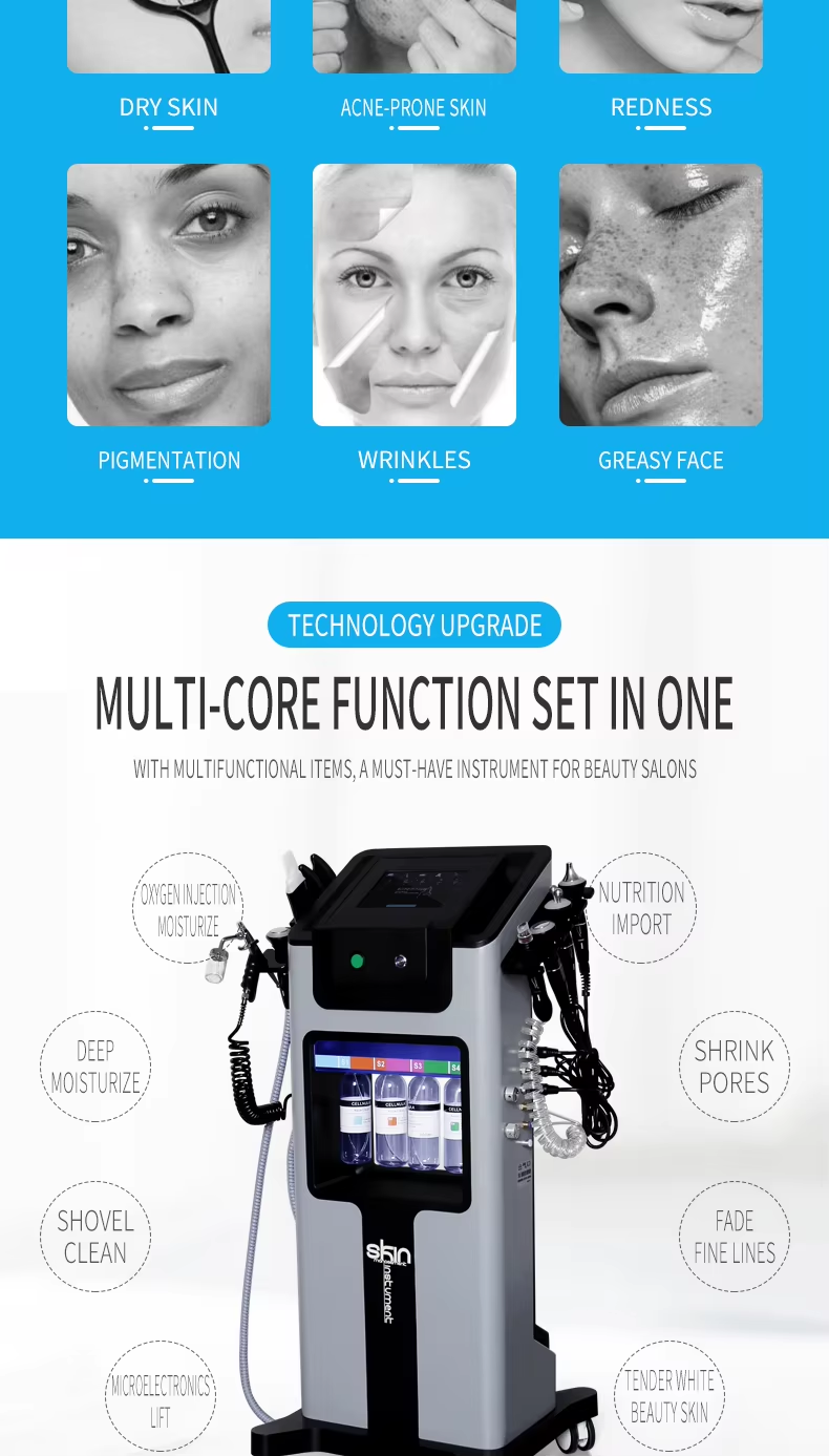 11 in 1 Hydro Dermabrasion Machine Water Jet Auqa Peeling Face Lift Blackhead Remove Beauty Salon Machine Exfoliating Deep Clean