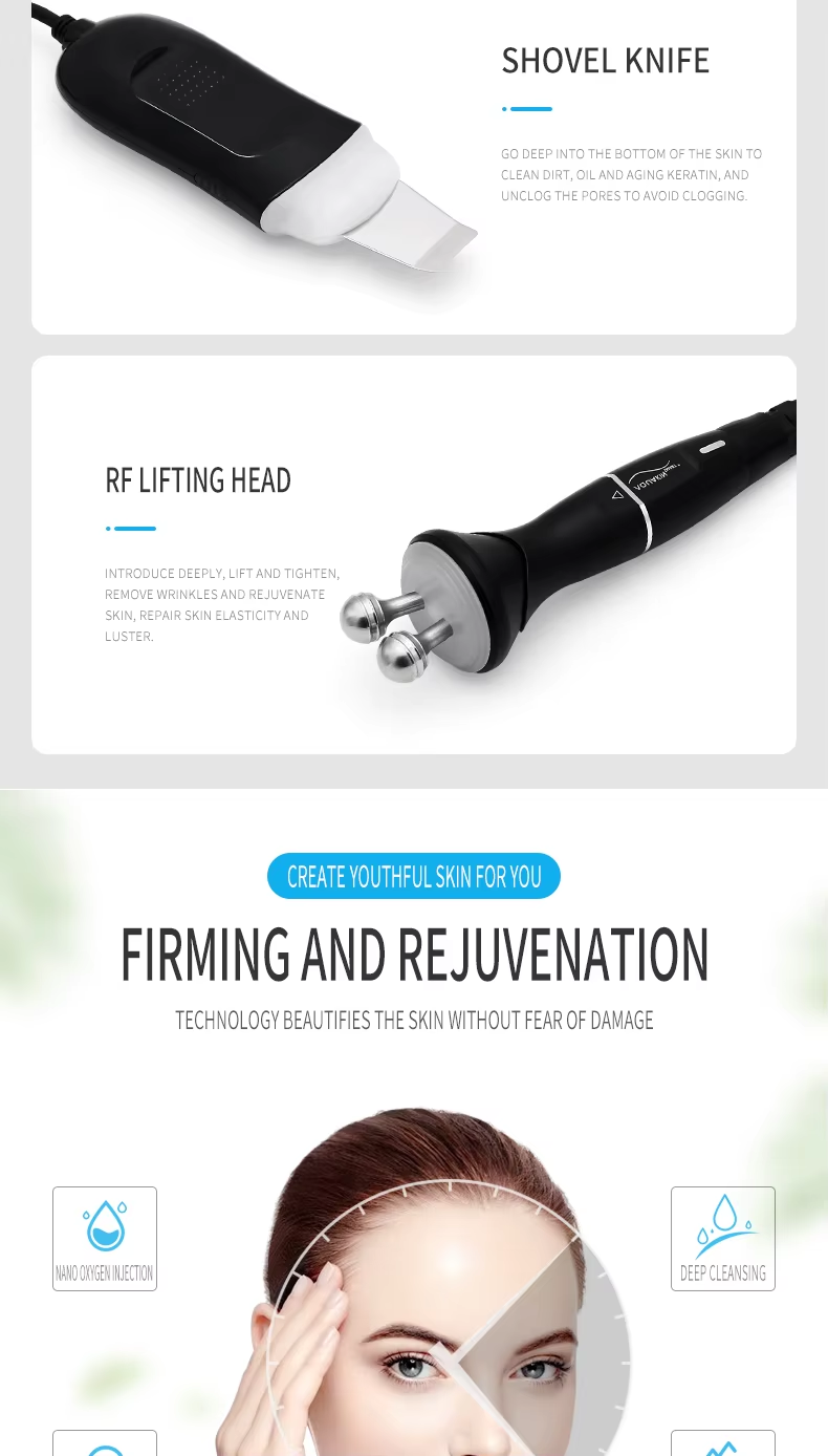 3. Balancing Oil and Shrinking Pores: During the cleansing process, the micro-water flow generated by the device removes excess sebum, regulating the skin's oil-water balance. Long-term use helps improve enlarged pores caused by excessive sebum secretion, making pores appear tighter.