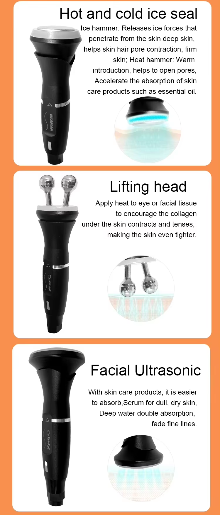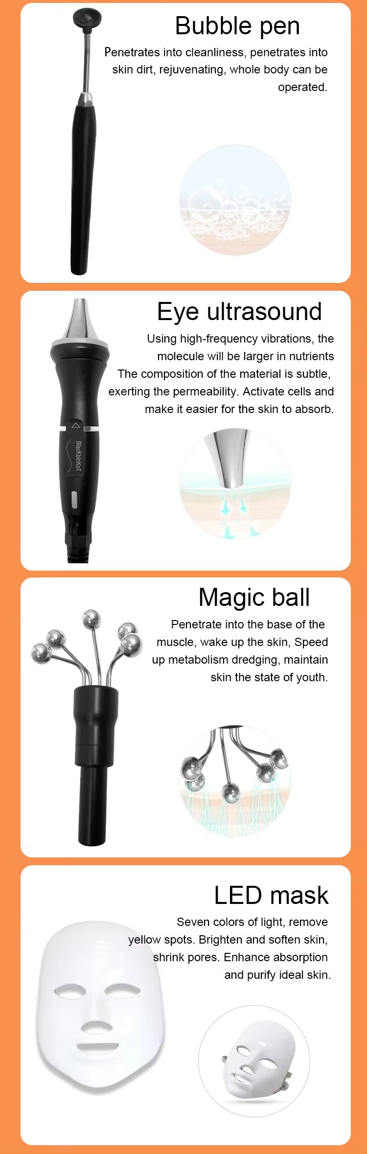 * Multifunctional Device: Our multifunctional facial machine moisturize the skin to make it smooth. It tightens the chin line to clear the under-eye area and lines on the eyes. It helps in improving the color and skin relaxation.
