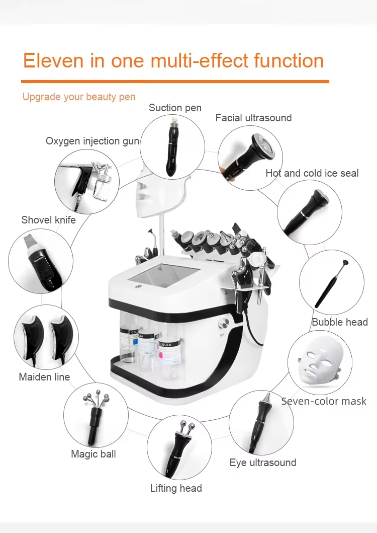 11 in 1 Hydrogen Oxygen Jet Facial Care Machine With Mask Multifunctional Small Bubble Face Skin Cleaning Beauty Device