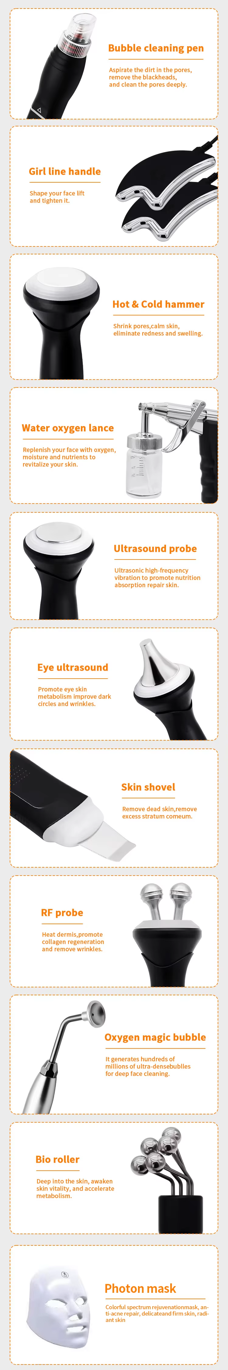 4.It comes with 12 interchangeable handles, each specifically targeted for facial skin analysis, including the delicate skin around the eyes and lips.