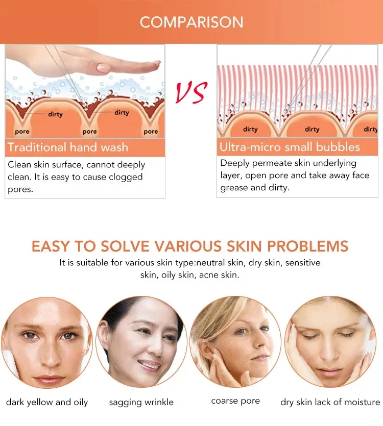 thousands times per second. Penetration effect of ultrasonic gives skin massage as well as cleansing.