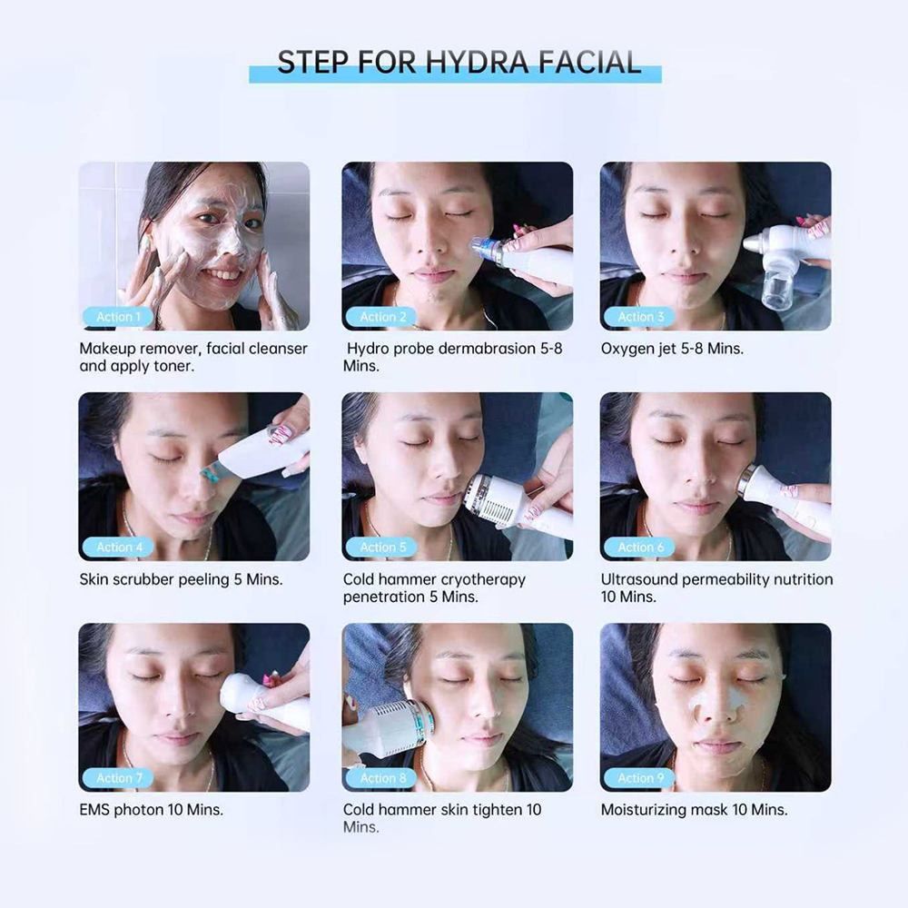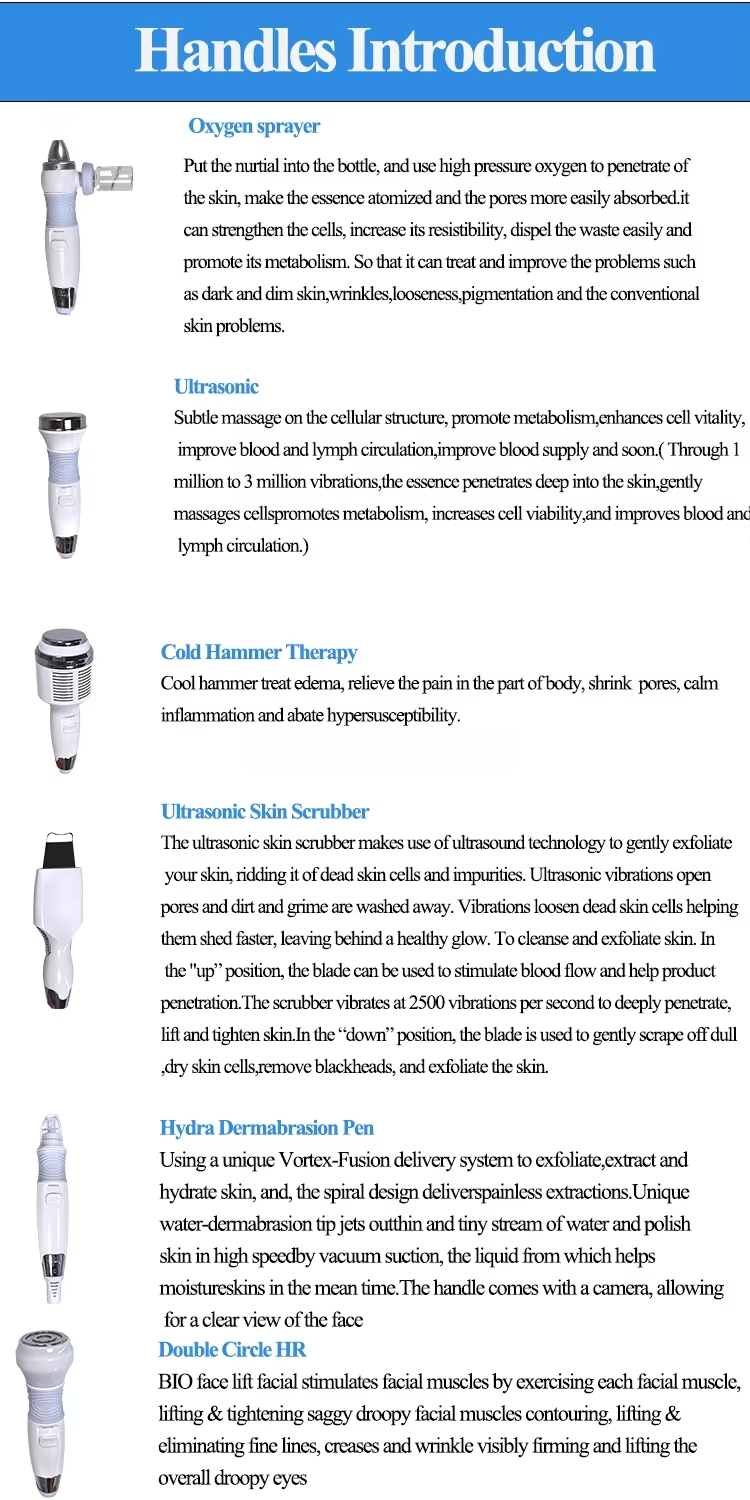 Function introduction 1.Hydrodermabrasion: break through the technical level of traditional small bubble instrument, open pores, soften cutin, make skin cleaner and deeper, improve dull and black skin, and make skin clean, white and tender.
