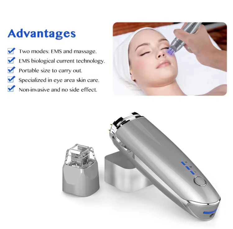 Clip realizes "lifting and kneading" massage, wakes up the skin active substances, stimulates the production of collagen, elastic fiber and hyaluronic acid, tightens the skin, strengthens the microcirculation in the body, increases metabolism, eliminates eye edema, promotes the discharge of deep toxins, stimulates the passive movement of muscle, enhances skin resistance, mobilizes cell activity, activates sleeping cells, and makes the skin smooth The skin is firmer, smoother and fuller, and it can quickly improve the skin's repair function against external environmental pressure. With EMS technology, muscle massage can be stimulated by micro current to restore muscle elasticity. At the same time, the stimulation of current will go deep into the dermis and make cells produce more adenosine triphosphate (ATP), which is the key material for collagen production. It can speed up the production of collagen and make eyes clearer, so as to achieve the functions of tightening skin, weakening fine lines, weakening dark circles and reducing bags under the eyes .