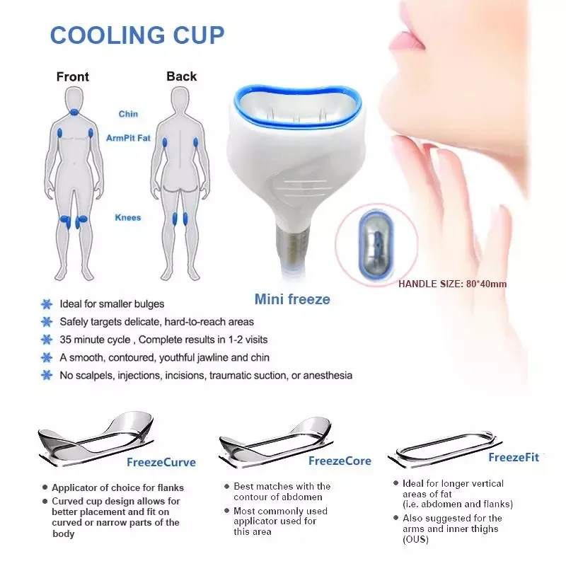 Small handle can work for double chin,knees,underarms,360° surrding, can100% frozen in full area.