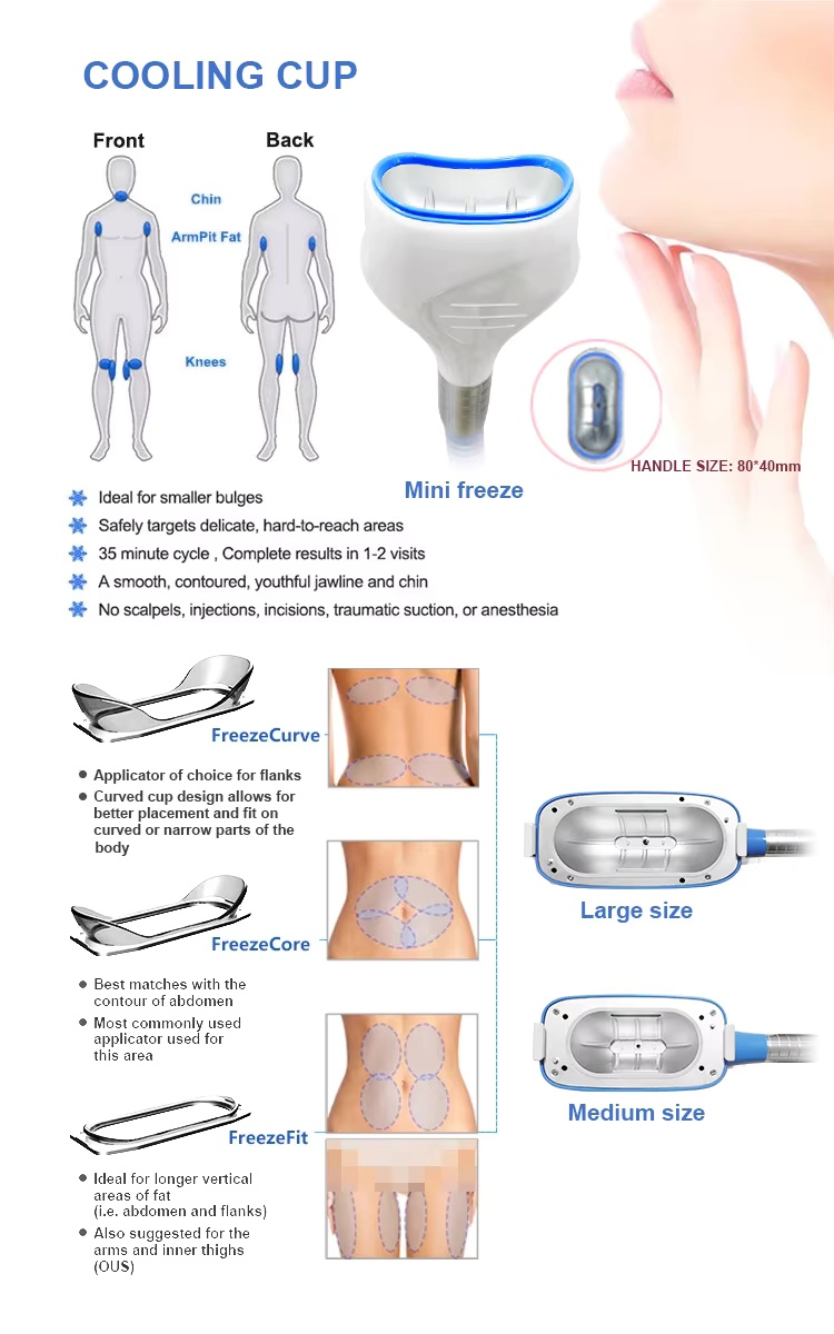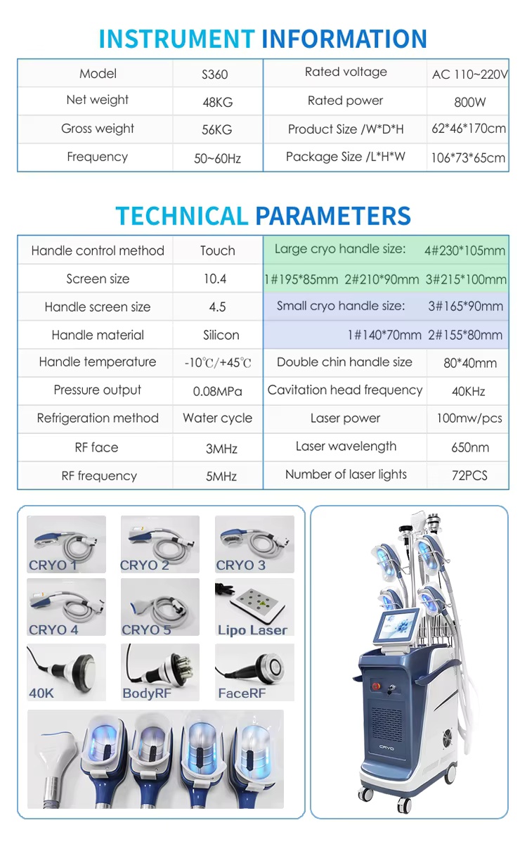 foroperation, parameters can be set flexibly; 8 pcs different sizes cryo handlesare suitable for different size areas and