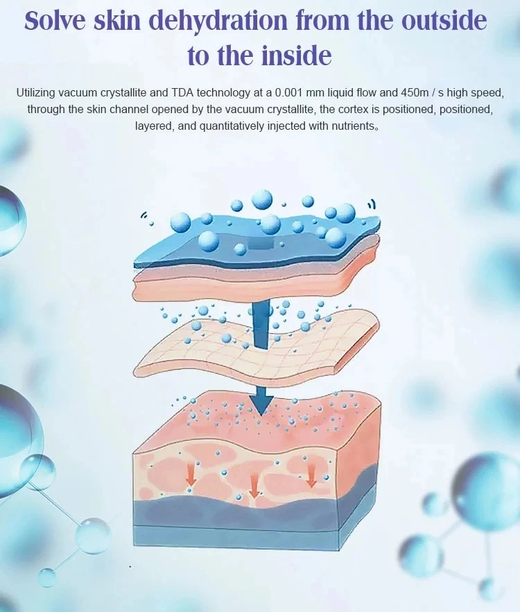 Facial tools, Removable docking type negative pressure handle makes the water light injection more convenient and strong, also used to inject hyaluronic acid after removing negative pressure handle. Adopting the latest full-color display, which can provide a complete vision from all angles.