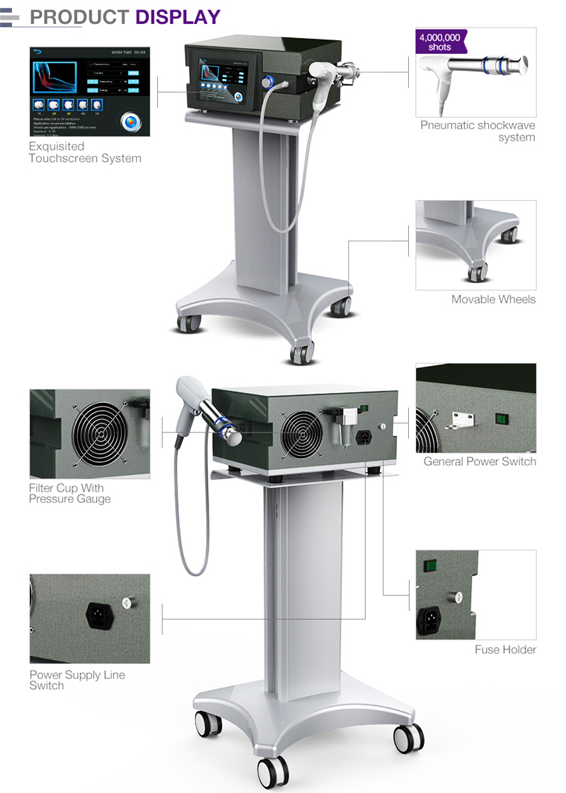 Physical Pain Therapy System 8 Bar 2000000 Shots Relieve Fatigue Extracorporeal Shock Wave Physiotherapy Instrument Vibration Massage Equipment