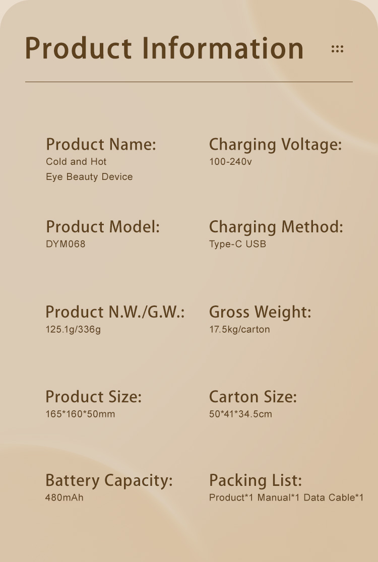 * Hot compress: The hot compress function brings gentle warmth, which helps promote circulation around the eyes and prepare for the absorption of subsequent skin care products