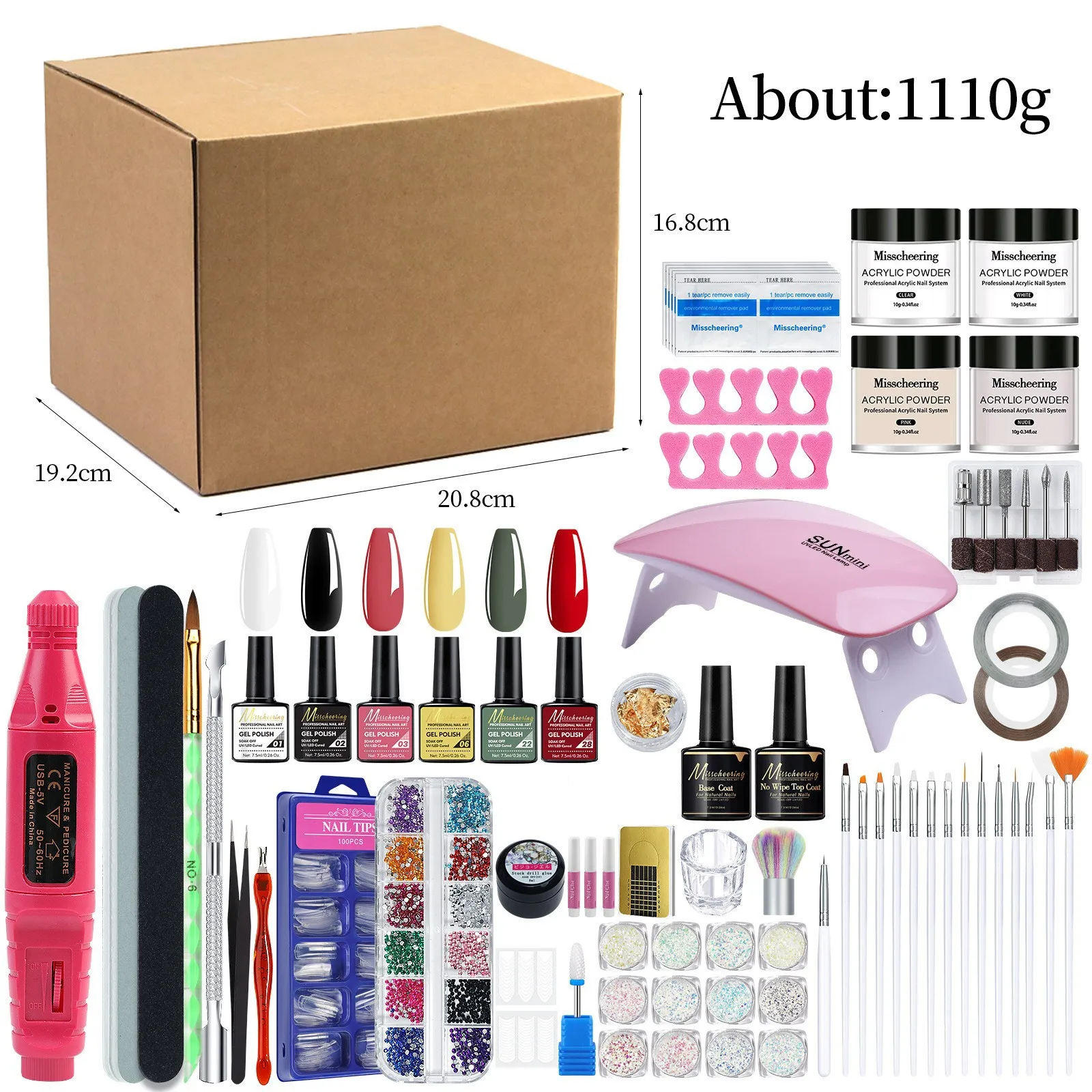 Manicure Set with UV Lamp and Nail Drill Machine Glitter Powder Kit for Acrylic Nails Art Accessories Decoration MGK Tools