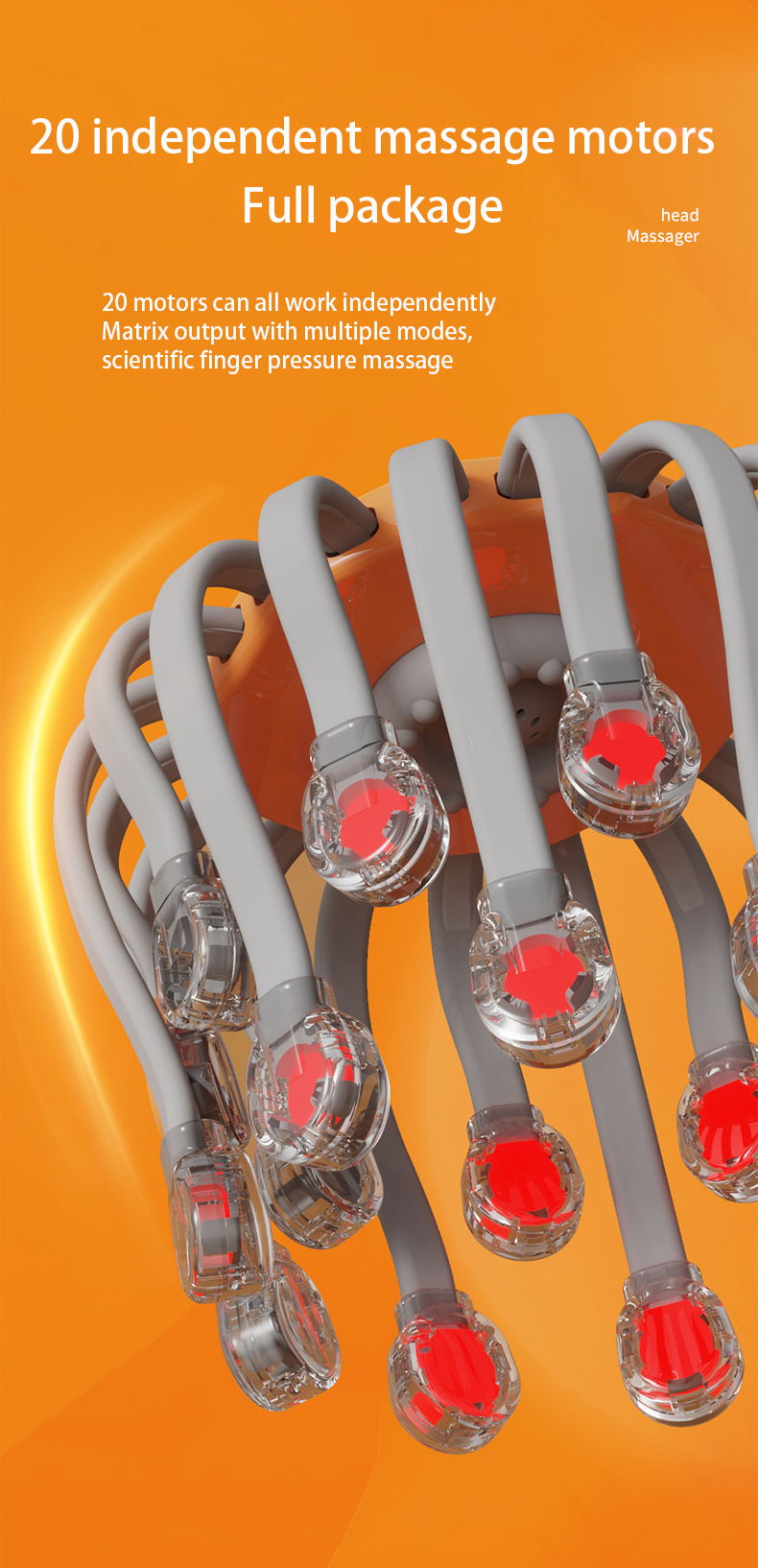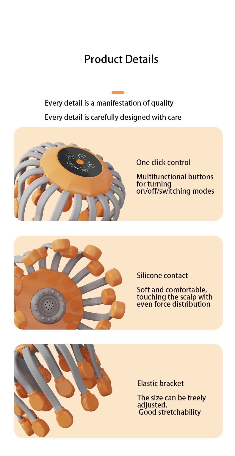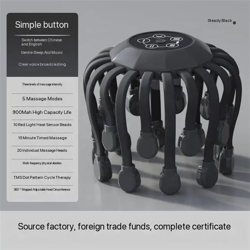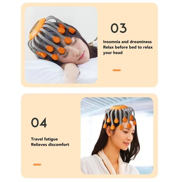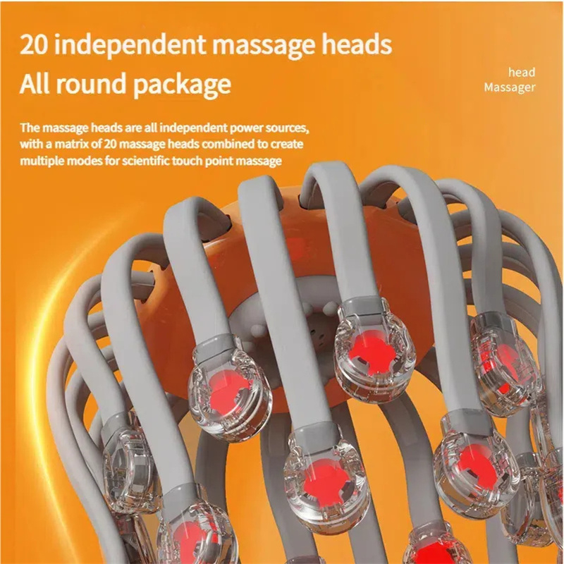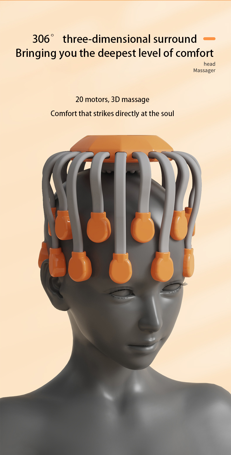 The 20 Claw Electric Head Massager is an intelligent decompression tool designed specifically for modern urban populations. It breaks through by using 20 independent massage claws, simulating professional technicians' finger pressure, kneading, and massage techniques. Combined with variable frequency vibration technology, it deeply stimulates acupoints in the head, effectively relieving head fatigue and improving scalp blood circulation.