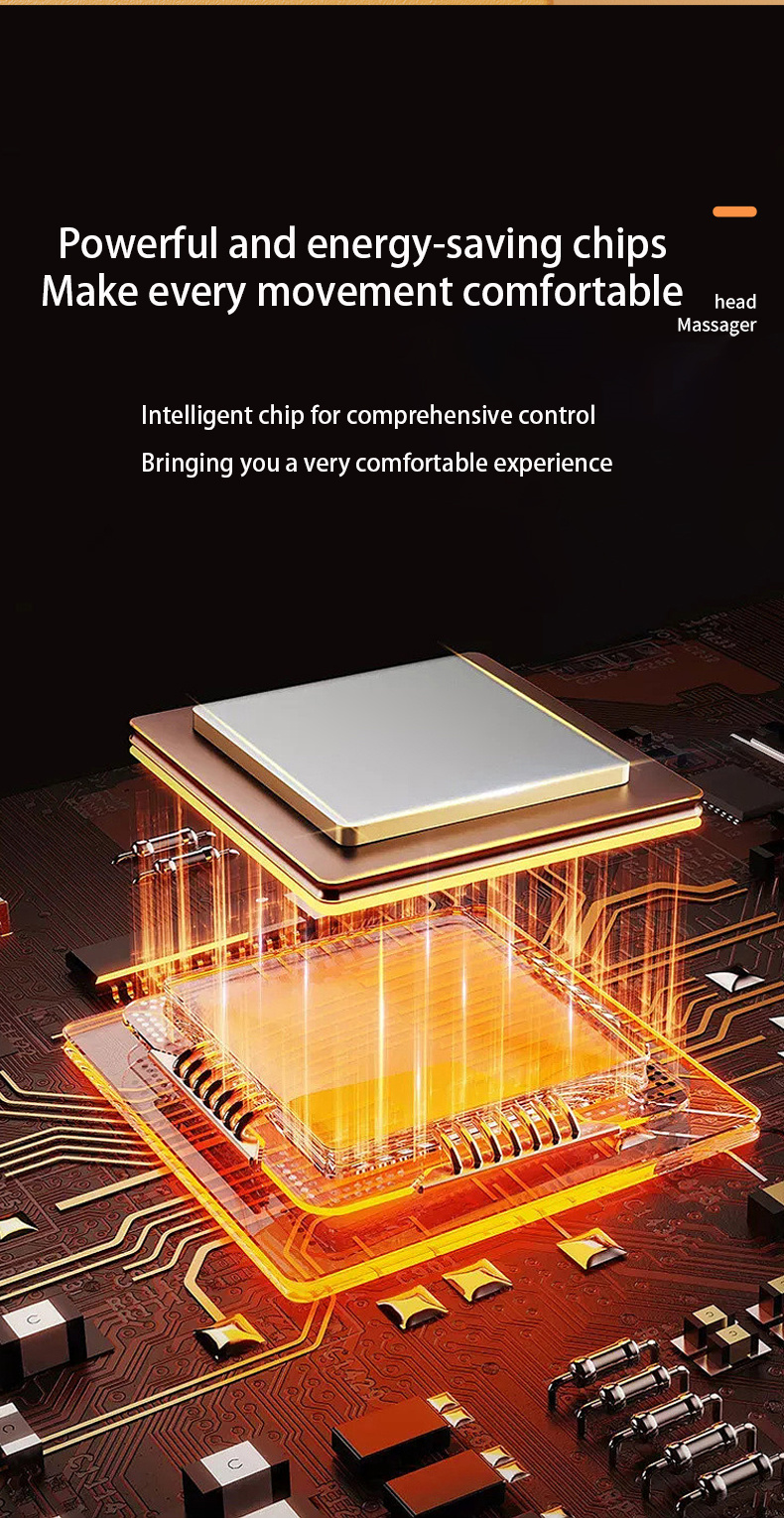 20 independent massage heads: wrapped in all directions, all massage heads are independent power sources. The 20 massage heads are combined in a matrix to form multiple modes, providing scientific touch point massage that fits the head shape 360 ° without dead corners. Gently grasp and pinch the scalp, effectively relaxing tight nerves.