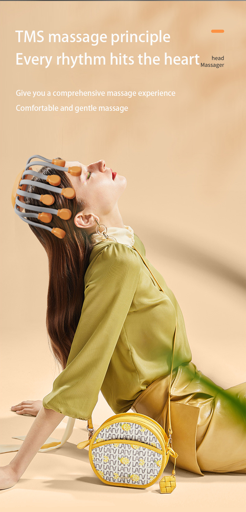 Start massage: Place the massager gently on the head and slowly move it to cover the entire scalp;