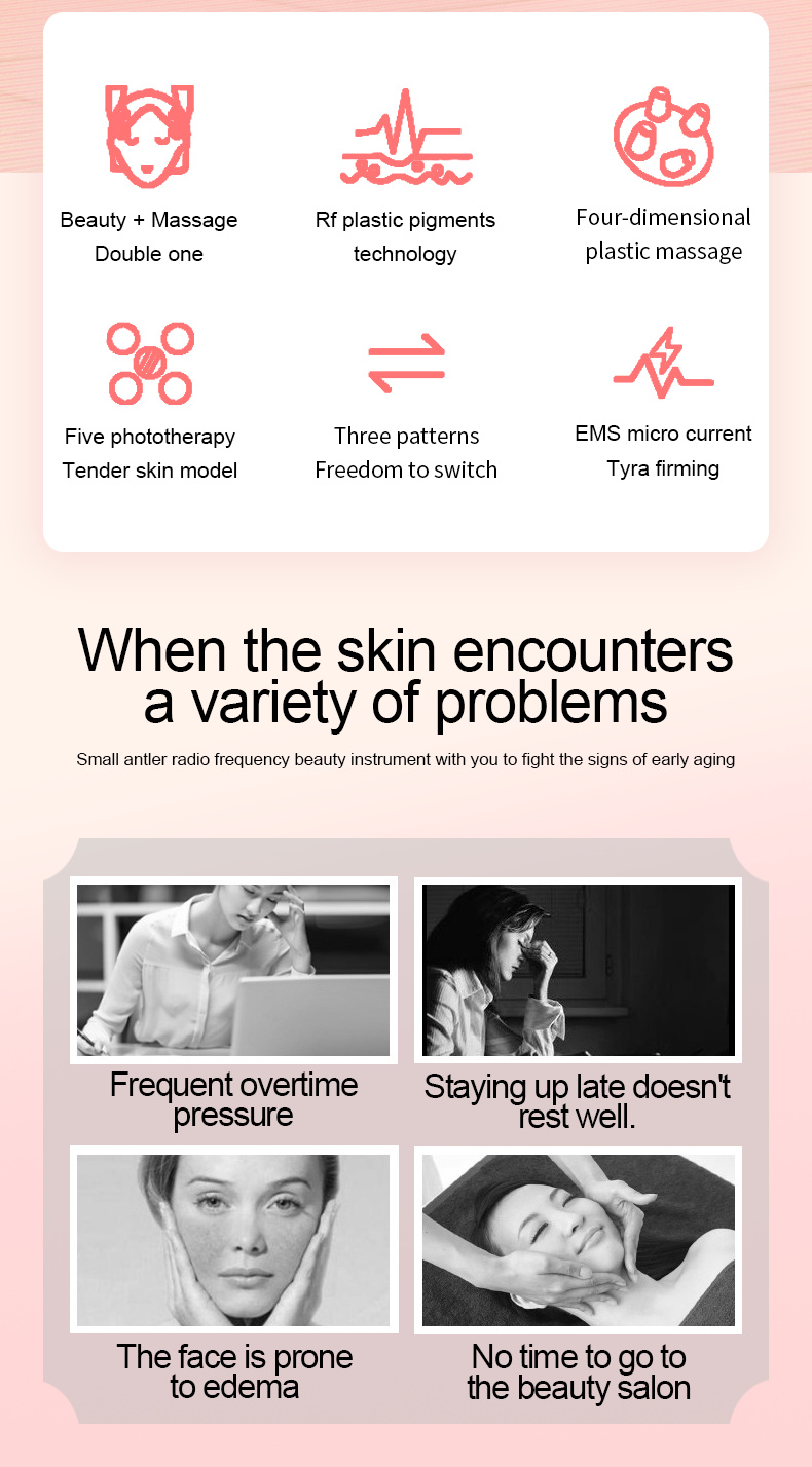 5. Two modes, three gears; three massage gears, three EMS RF massage three-in-one gears, to meet the needs of different groups of people.