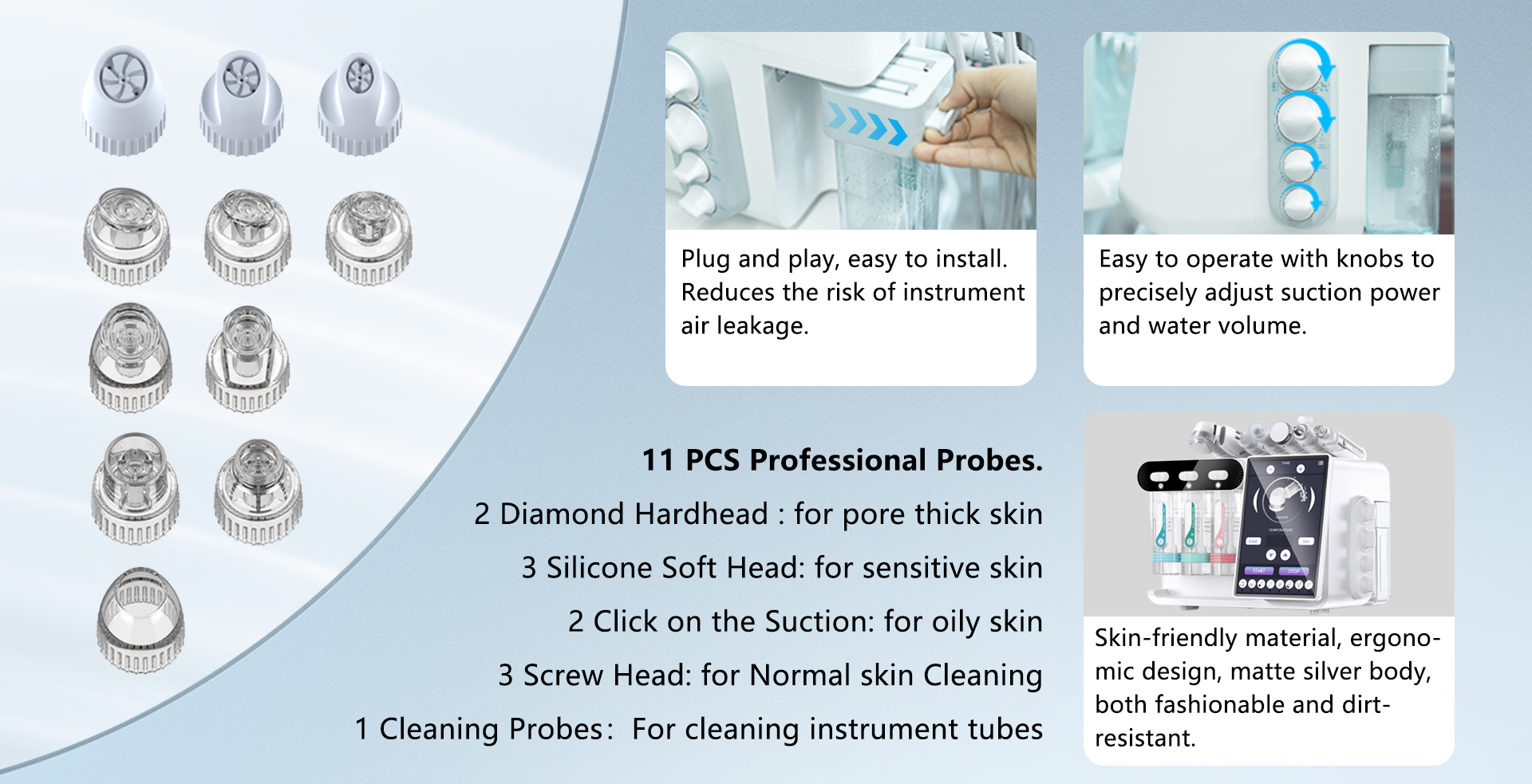 1.1 MHz, shake 1 million to 3 million times per second to make the absorption rate of the product reach more than 90%. Add anti scratch protective film to the handle head, and remember to remove the protective film before operation.