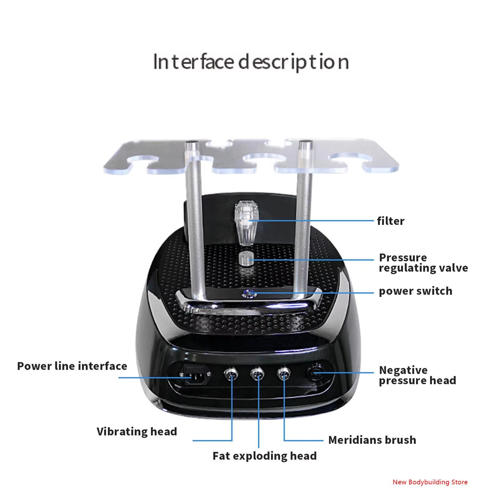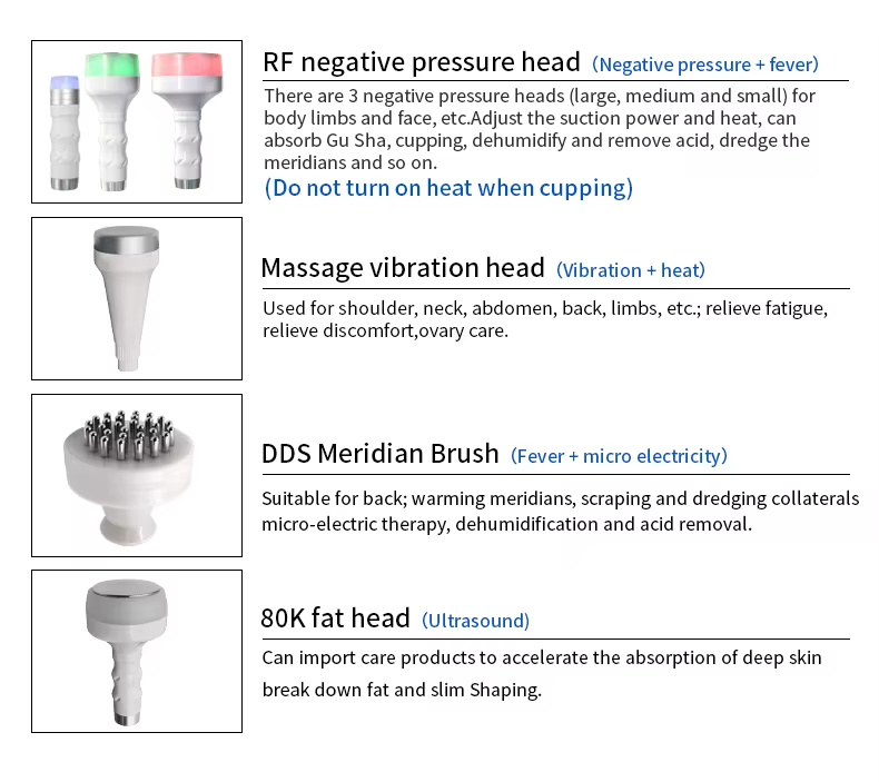 Through the combination of vacuum negative pressure and photoelectricity,smooth lymphatic duct, accelerate the metabolism of the body, blood circulation,accelerate the metabolism of toxins and the absorption of nutrients, relieve pain,health and health care, thus play the purpose of acid removal and acid correction.High frequency radio frequency can deep directly reach fat body, make adipocyte tissue in fast and active state, produce heat energy friction heat of cell body,make local temperature rise, through sweat gland, with vacuum suction, strong massage through negative pressure. Direct blasting thick fat, the effect is obvious.