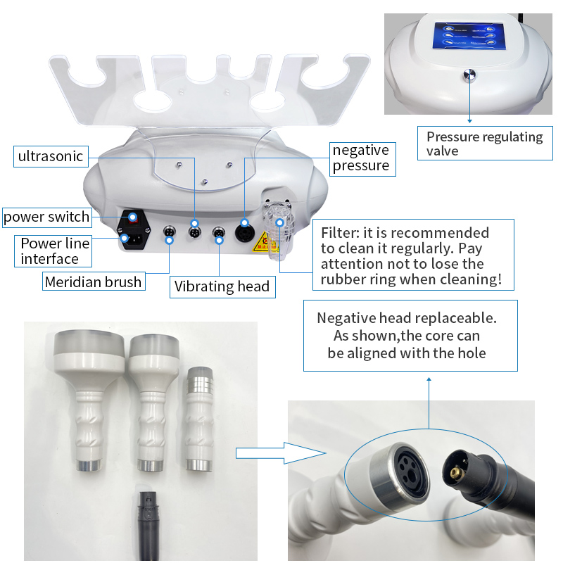 Through the combination of vacuum negative pressure and photoelectricity, smooth lymphatic duct, accelerate the metabolism of the body, blood circulation, accelerate the metabolism of toxins and the absorption of nutrients, relieve pain, health and health care, thus play the purpose of acid removal and acid correction. High frequency radio frequency can deep directly reach fat body, make adipocyte tissue in fast and active state, produce heat energy friction heat of cell body, make local temperature rise, through sweat gland, with vacuum suction, strong massage through negative pressure. Direct blasting thick fat, the effect is obvious.