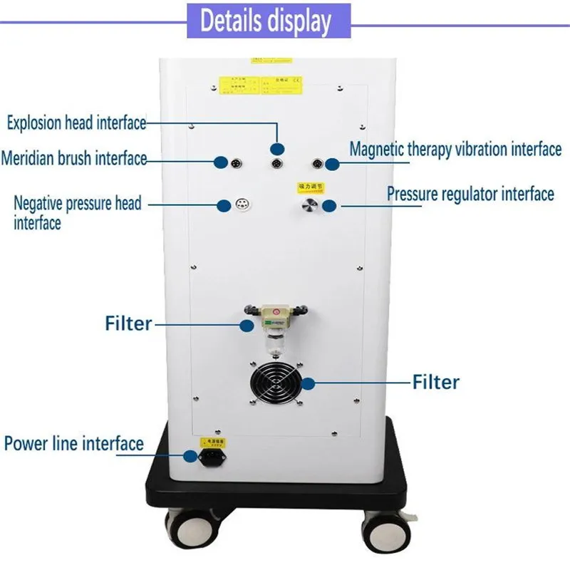 b. Anti-aging and acid-base balance: Through vacuum suction, far infrared ray, magnetic therapy and photoelectric combination, the instrument dredge lymphatic meridians, accelerating the metabolism of the body, blood circulation, speeding up the metabolism of toxins and the absorption of nutrients, relieving pain and health care, so as to achieve the purpose of acid discharging.