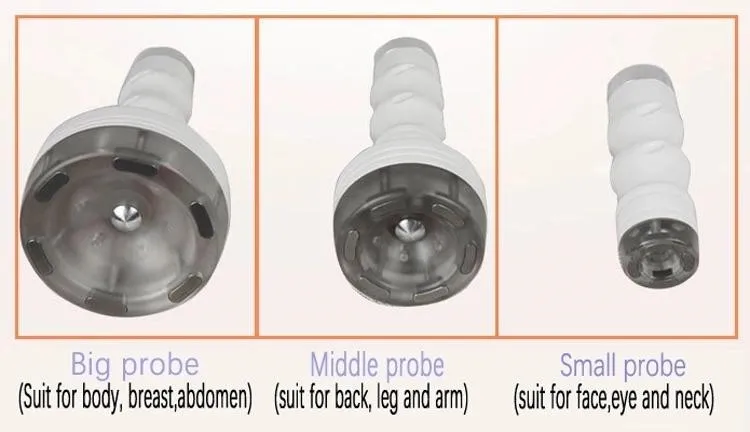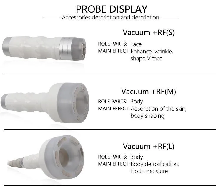 2) Large and medium-size negative pressure handle: Effect on the body for scrapping and cupping, improving body plasticity and body acid removal. Dredging the meridian: Scrapping of detoxification. It is able to lift arms to repair shape, accelerate blood cell circulation, promote lymphatic metabolism, take away the waste and toxin in the body, and strengthen the body.