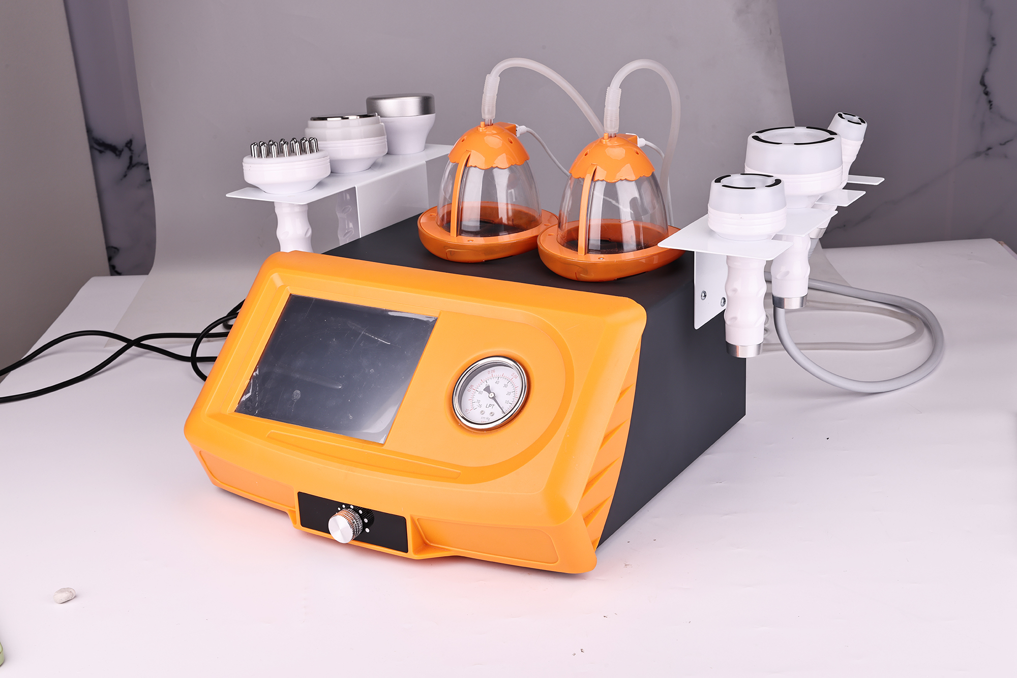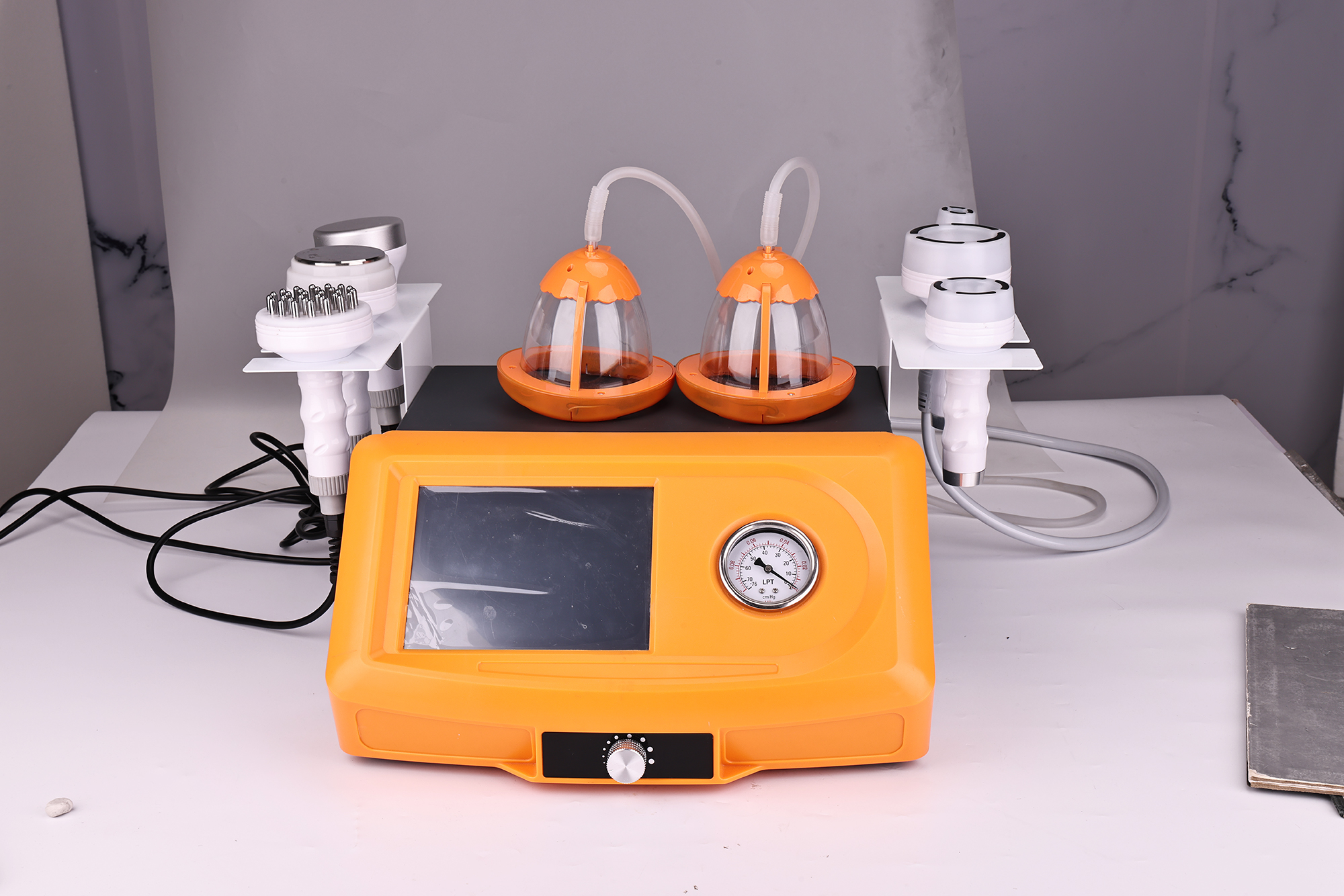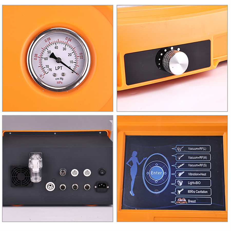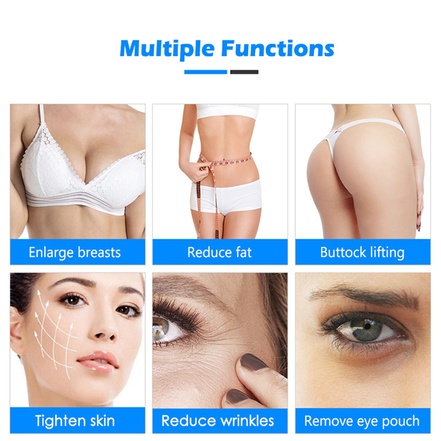 The specially designed vacuum pump, through the vacuum negative pressure theory and full frequency wave modulation, forms the rhythmic vacuum suction and discharge, which can not only make the breast plump, but also exercise the breast tendon, and achieve the firm effect. The vacuum pump enters the breast tissue cells through the rhythmic inhalation of fat particles and liquid, soas to make the breast tissue renew and combine, then decompose, expand and finalize, and maintain the fullness and straightness of the breast, so as to achieve the ideal effect of breast augmentation and hip lifting.
