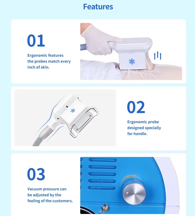 ----Freeze vacuum,more reliable-adopt the latest cooling technique in the world. Apply exactly to targeted tissue varying from area to area to achieve high operation efficiency,Low energy output to ensure a comfortable and painless operation course